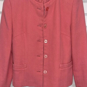 Pretty pink vintage blazer size 2 textured blazer lined pleated cuffs neckline