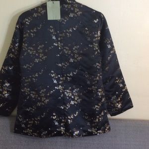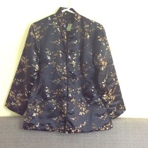 Very pretty Asian style jacket, snap front. Easily worn with silk came or white t-shirt ... just over 26" long, and 19" straight across between armholes.