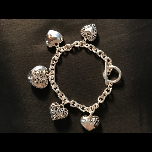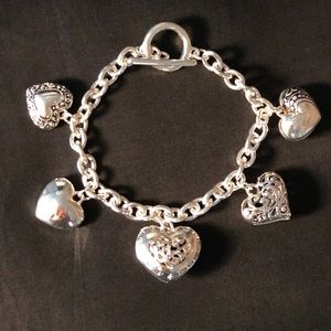 Pretty, silver color, heart charm bracelet.
