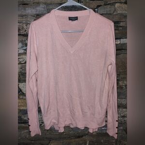 Pretty soft pink Primark sweater, faux buttons on cuff, size M, v neck