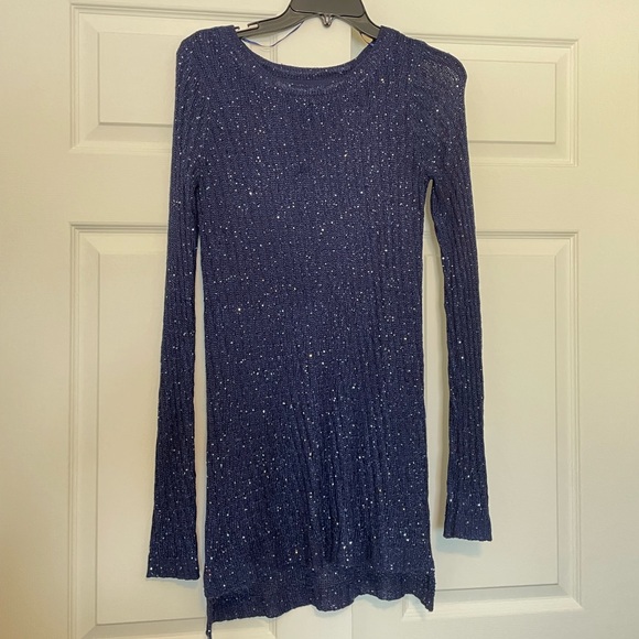 Super pretty blue sweater with sparkles. Not a dress just a little long.