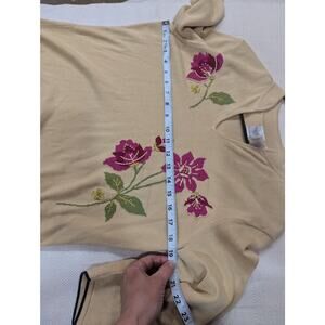 Pretty tan v-neck sweater w/pink floral detailing by Emma James size M