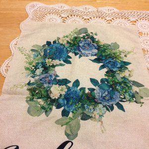 Garden flag with pretty wreath, says "Welcome Home". NWOT. No shepherd's hook included, flag only. 12 1/4" x 18 1/2"
