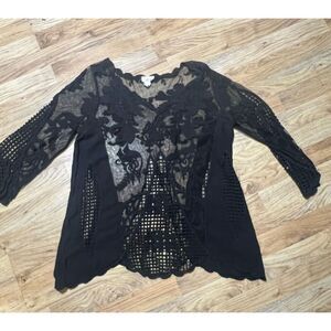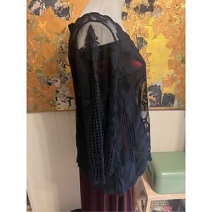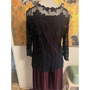 From pretty angel this is a gorgeous black lace and linen topper to wear over just about anything! This could be Goth or absolutely elegant, depending on how you style it! Sexy or demure this is so versatile. This is a linen blend to hand wash.