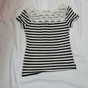 Very pretty striped tee with lace panel accent!