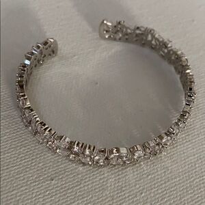 Pretty Crystal Cuff, Silver, Perfect For Wedding Or Special Occasion, 6.5” With One Inch Opening