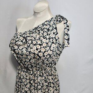 PrettyGarden Black Floral Print One-Shoulder Dress Size L