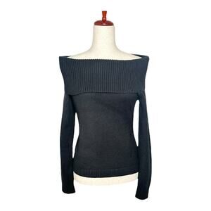 PrettyGarden Black Off-Shoulder Ribbed Sweater Top Cozy Date Night Minimal M