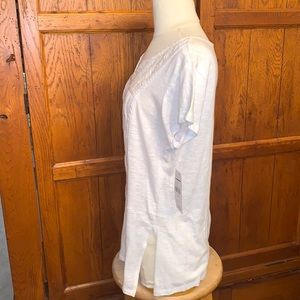 ⭐️NEW with Tags💕BEAUTIFUL & LACEY White Short-Sleeved Top with Gathered sections on front separated by Pretty Crocheted Lace.
