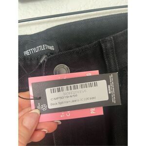 Pretty Little Thing Black Straight Leg Split Hem Jeans NEW NWT