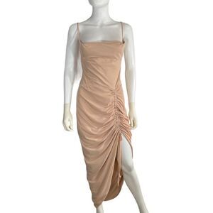 Pretty Little Thing Women’s 8 Nude Ruched Side Split Maternity MIDI Dress Mesh