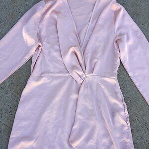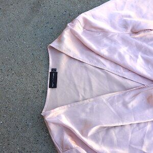 PrettyLittleThing, PLT, Size 10, Blouse, Top, Long Sleeve, Satin, Silky, Drape, Knot Front, Wrap Top, V Neck, Pink, Blush, Nude, Cocktail, Party