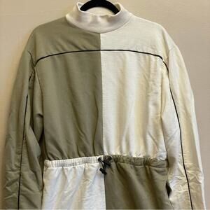 PrettyLittleThing 10 mini dress turtleneck long sleeve green white checkerboard
