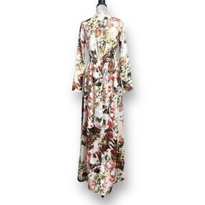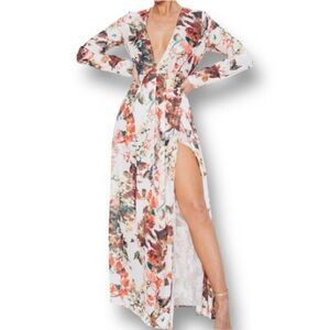 Description: Romantic and flowy NWT floral maxi dress from PrettyLittleThing featuring long sleeves, a deep V-neckline, and dramatic leg slit. Lightweight chiffon perfect for weddings, vacations, or sunset dates.