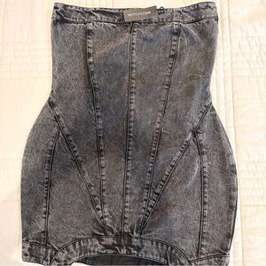 PrettyLittleThing Asymmetrical Denim Washed Black Mini Dress NWT US 6