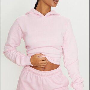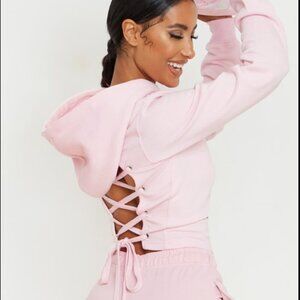 PrettyLittleThing Baby Pink Lace Up Back Crop Hoodie M