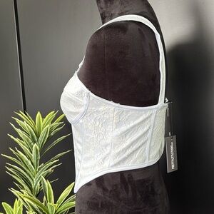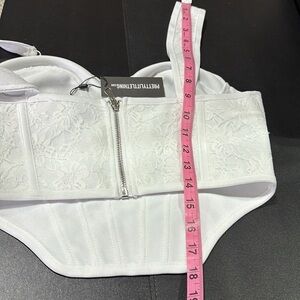 PrettyLittleThing Bandage Corset Crop,lace overlay,dip hem,bust cup,zipper back
