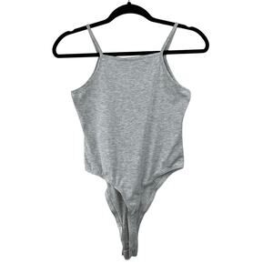 PrettyLittleThing Basic Grey Marl Cotton Sleeveless Scoop Neck Bodysuit 12/L NWT