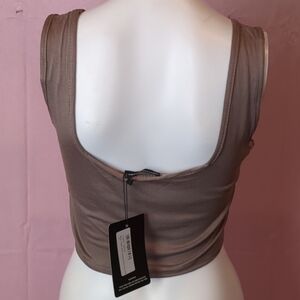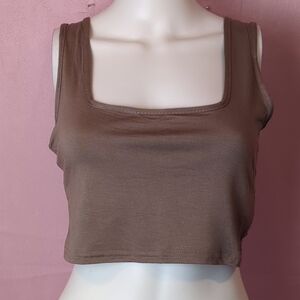PrettyLittleThing Basic Taupe Jersey Square Neck Cropped Tank Top size 8