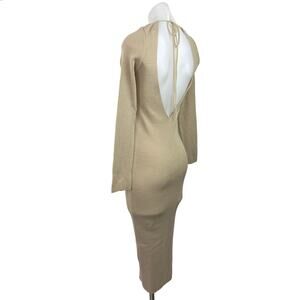 PrettyLittleThing Beige Knit Long Sleeve V-Neck Midi Sweater Bodycon Dress 12