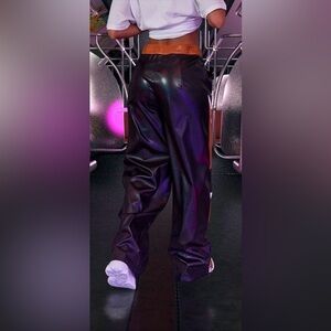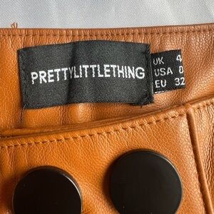 PrettyLittleThing Black Brown PU Faux Leather Panel Wide Leg Pants. Get that effortlessly chilled vibe on-point with these bottoms. Featuring a black PU material with a panel design and a wide leg fit. Like new. Size US 0.