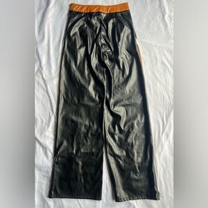 PrettyLittleThing Black Brown PU Faux Leather Panel Wide Leg Pants 0