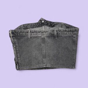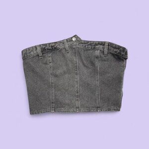 Brand new with tags! This structured black denim corset top from PrettyLittleThing features a unique faux waistband design with silver-tone button detail, belt loops, and vertical panel seams for a flattering fit. The piece has a full side zipper for easy wear and a structured, non-stretch feel made from a cotton/lyocell blend.