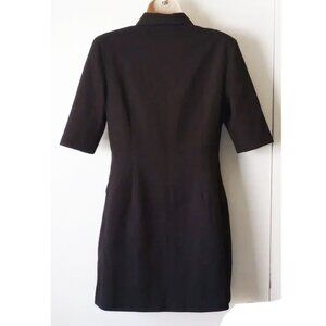 Chic black double-breasted dress. Features short sleeves and a tailored fit. Perfect for formal occasions. Inner button is missing but can be easily fixed. Otherwise, in great condition.