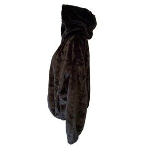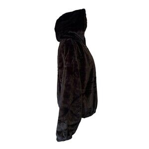 PrettyLittleThing Black Faux Fur Balloon Sleeve Hooded Jacket Women's Size 6 US