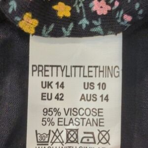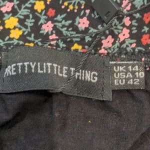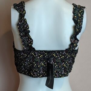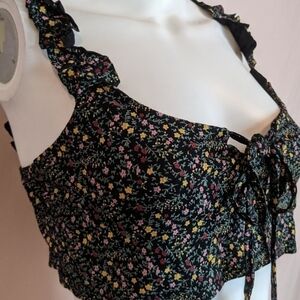 PrettyLittleThing Black Floral Ruffle Straps Keyhole Tie Front Crop Top size 10