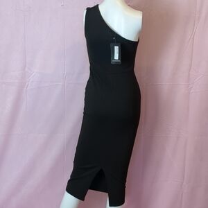 PLT black one shoulder bodycon midi dress with cut out bodice design