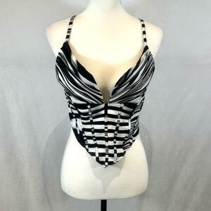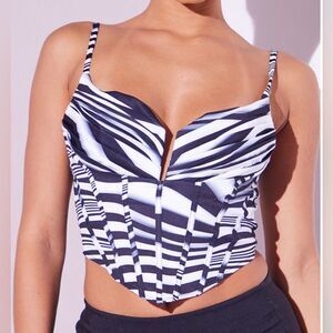 PrettyLittleThing Black Printed Strappy Pleated Corset Detail Crop Top Size 6