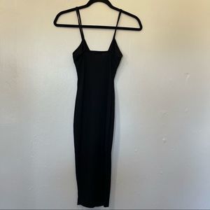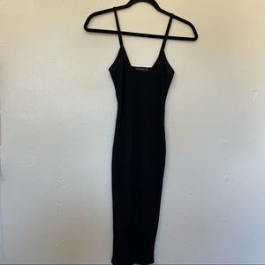 Pretty Little Thing Black Ribbed Midi Plunge Bodycon Dress with Missing Seams. There are two spots that need to have the seams redone. Easy fix! Size 0. Please ask all questions prior to purchasing so there is no confusion! Make me an offer😊