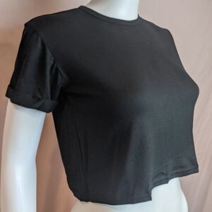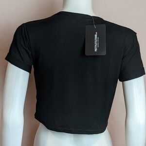 PrettyLittleThing Black Roll Sleeve Cropped Tee size 0
