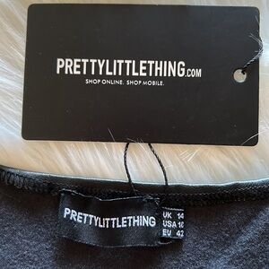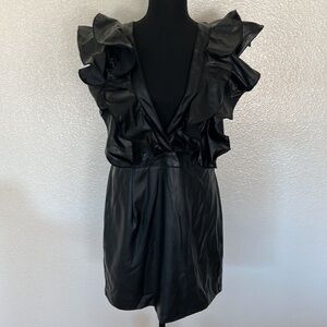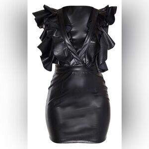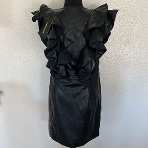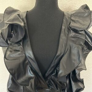 Sleek black dress with dramatic ruffles. Deep V-neckline. Perfect for a night out.