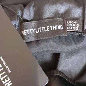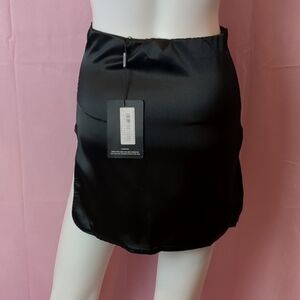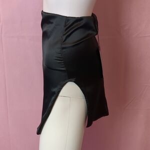 PrettyLittleThing Black Satin Extreme Side Split Mini Skirt size 0