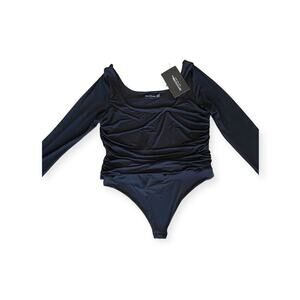 PrettyLittleThing Black Slinky Ruched Long Sleeve Square Neck Bodysuit