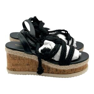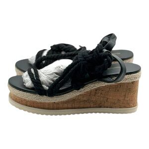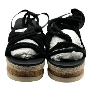 PrettyLittleThing‎ Black Tie-up Round Toe Espadrille Wedge Heeled Sandals Size 5