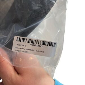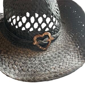 PrettyLittleThing Black Weave Heart Detail Cowboy Hat NWT One Size