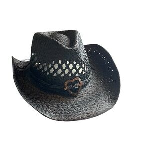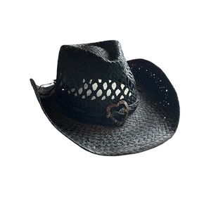 • Style: Woven cowboy hat with open weave crown and heart buckle accent