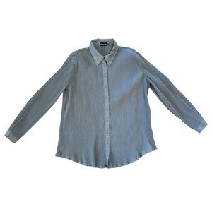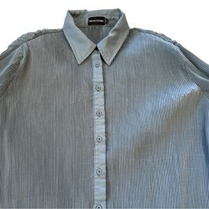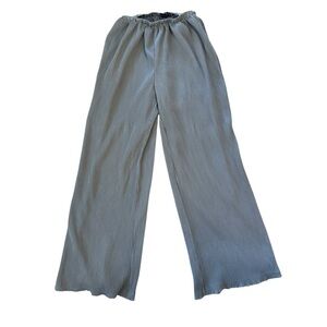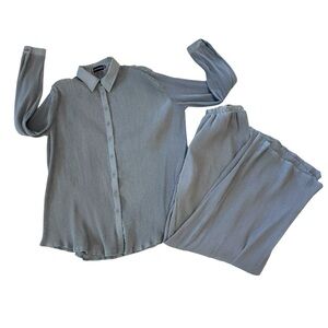 Amazing matching set with silky satiny ribbed baby blue material. Stretchy waistband. Button down top. Both size 4, but oversized. See measurements.