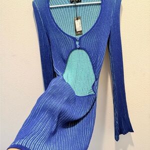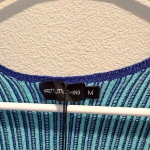 PrettyLittleThing Blue Ribbed Cut-Out Bodysuit