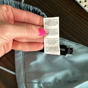PrettyLittleThing Blue Satin Triangle Bralette & Wide Leg Trouser Set