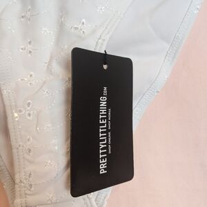 PrettyLittleThing white Broderie bikini bottoms. 82% Polyamide, 18% Elastane. New with tags