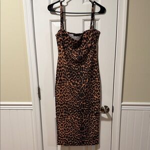 Fierce leopard print midi dress. Spaghetti straps. Perfect for a bold look. B7