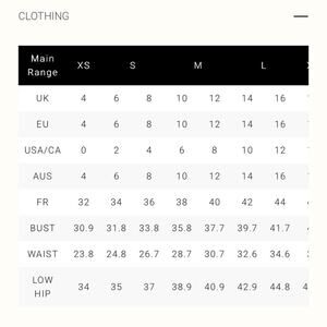 Official size chart in photos