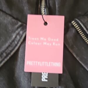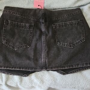 Trendy charcoal cargo shorts with zipper front. Features large pockets for style and utility.