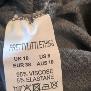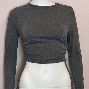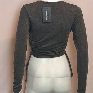 PrettyLittleThing Charcoal Gray Jersey Ruched Sides Long Sleeve Crop Top size 6