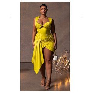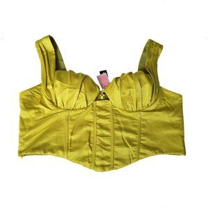 PrettyLittleThing Chartreuse Constructed Satin Ruched Bust Corset NWT