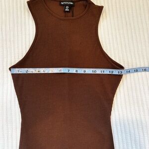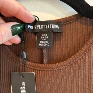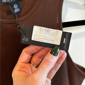 PrettyLittleThing Chocolate Brown Ribbed Racer Back Midi Dress NWT Size US 2